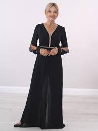 Zwarte jumpsuit met dubbele laag aan de pijpen. Er zit een doorzichtige tweede laag chiffon waardoor de broek een feestelijk effect krijt. De jumpsuit is afgezet met goud. De mouwen zijn ook van een doorzichtig chiffon